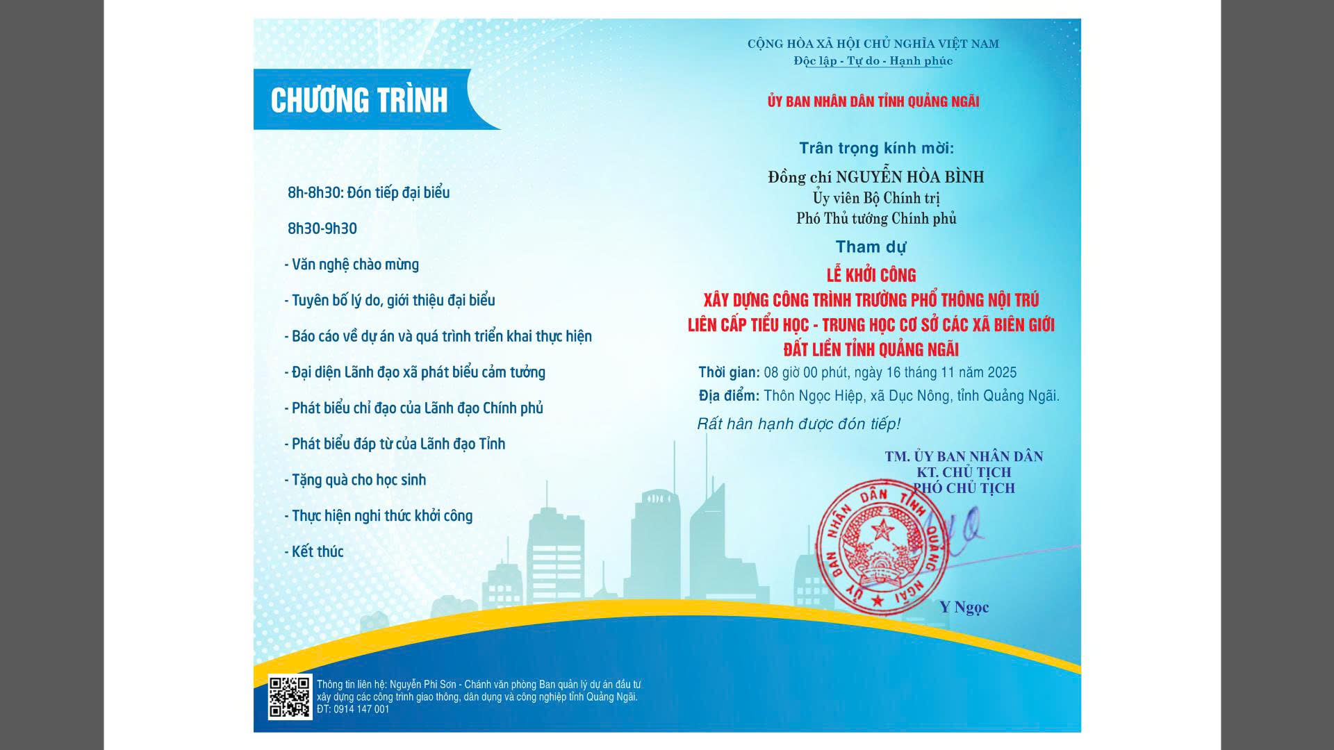 Lễ khởi công xây dựng Trường Phổ thông nội trú liên cấp Tiểu học -THCS các xã biên giới đất lièn tỉnh Quảng Ngãi